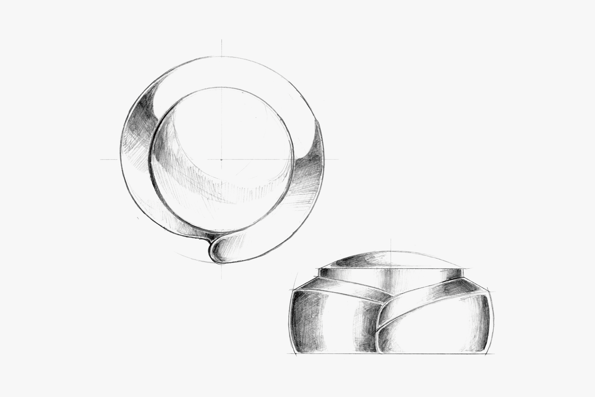 ケースの周りにもう1つ枠があるようなデザイン。3石のダイヤモンドが左右に動く、一般的な腕時計にはない構造で、薄くて腕なじみがよい形にまとまっています。ケースには各所に細かく斜面が作られていて、豊かな光の反射が美しいだけでなく視覚的に薄く見せる効果もあります。